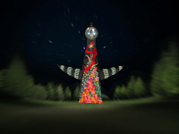 太陽の塔をスクリーンとして3Dプロジェクションで美しい映像を映し出します。