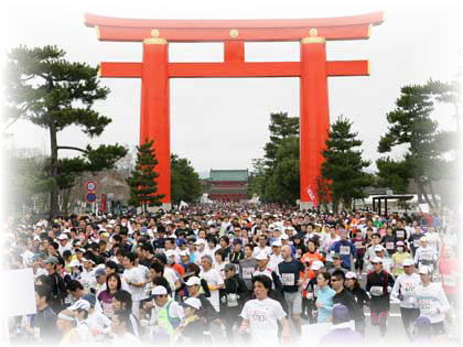 京都の有名な名所旧跡を走りぬけ、一般市民参加型の大規模マラソン大会です。